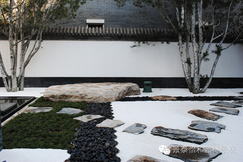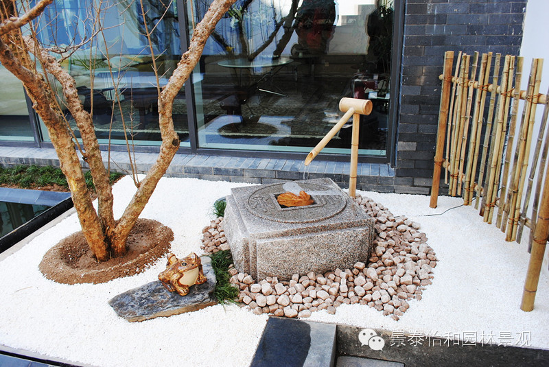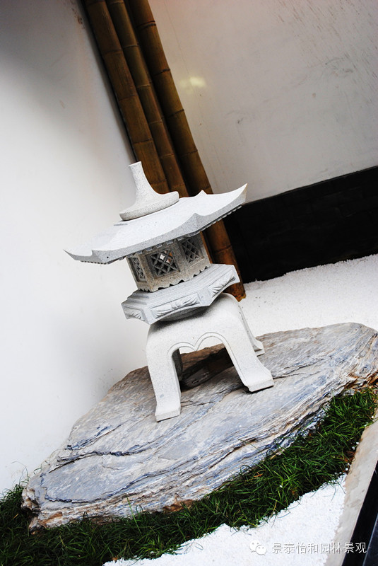 5)談佛論法,體現(xiàn)禪意。宗教在日本一直處于重要地位,而寺院、神社則是日本文化中重要的象征物。日本園林的造園思想受到極其濃厚的宗教思想的影響, 追求一種遠(yuǎn)離塵世,超凡脫俗的境界。特別是后期的枯山水,竭盡其簡(jiǎn)潔,竭盡其純潔,無(wú)樹無(wú)花,只用幾尊石組,一塊白砂,凝纏成一方凈土。