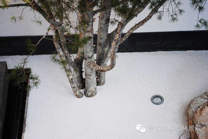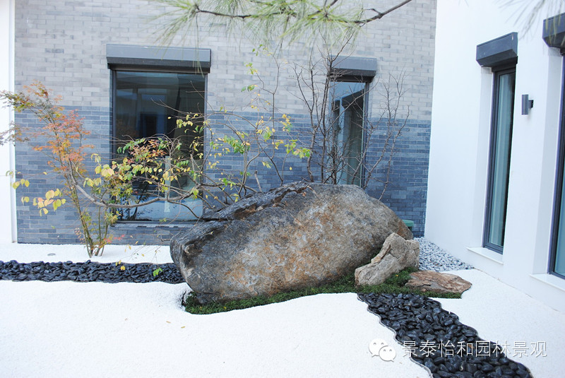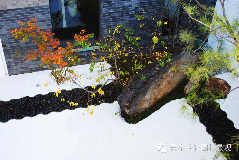 2)講究寫意,意味深長(zhǎng)。日本園林常以寫意象征手法表現(xiàn)自然,構(gòu)圖簡(jiǎn)潔、意蘊(yùn)豐富。其典型表現(xiàn)便是多見(jiàn)于小巧、靜謐、深邃的禪宗寺院的“枯山水”園林。在其特有的環(huán)境氣氛中,細(xì)細(xì)耙制的白砂石鋪地、疊放有致的幾尊石組,便能表現(xiàn)大江大海、島嶼、山川;不用滴水卻能表現(xiàn)恣意汪洋,不筑一山卻能體現(xiàn)高山峻嶺,懸崖峭壁。它同音樂(lè)、繪畫、文學(xué)一樣,可表達(dá)深沉的哲理,體現(xiàn)出大自然的風(fēng)貌特征和含蓄雋永的審美情趣。