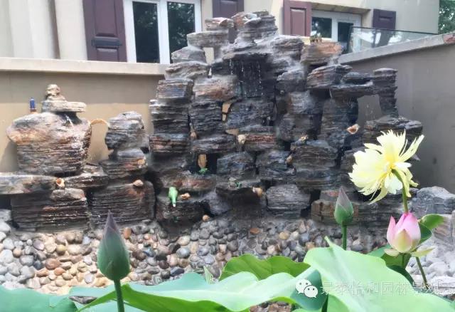 在中國(guó)人的觀念里,水是庭院設(shè)計(jì)中不可或缺的。用中國(guó)式的景觀石、山石搭成假山造景,營(yíng)造疊水效果,模仿山泉小溪。水流從高處跌落,流入一汪曲線形狀的池塘,池中種植荷花,如一幅中國(guó)畫般的場(chǎng)景。