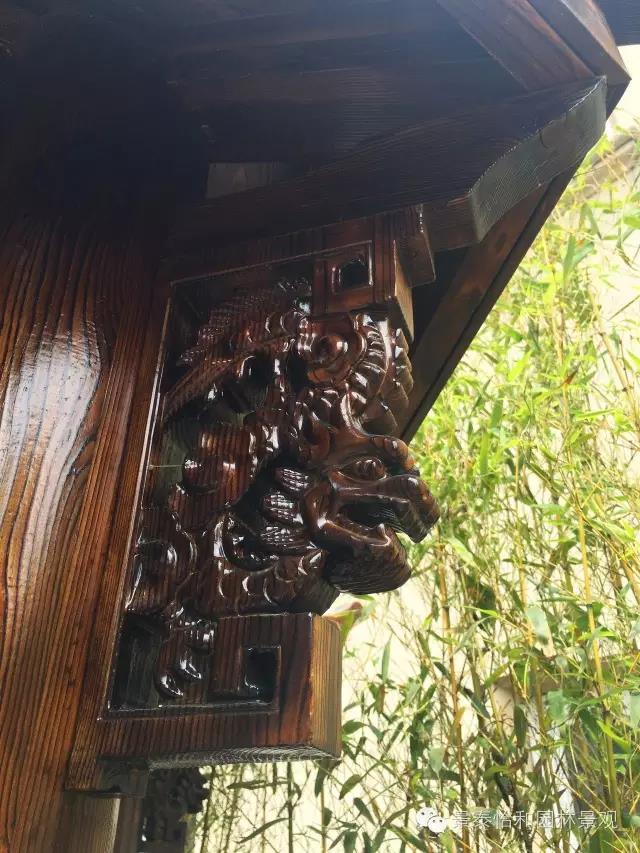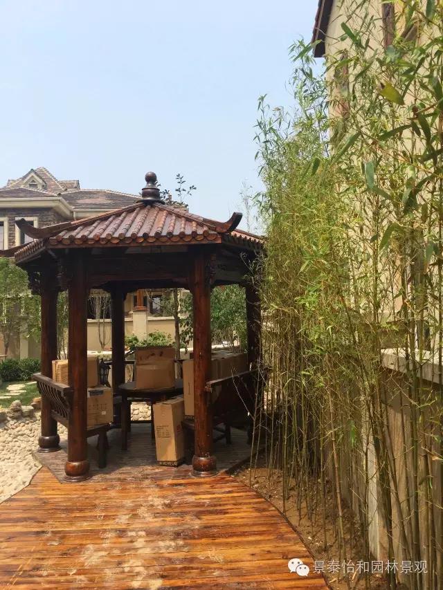 庭院中植物設(shè)計(jì)豐富,布局也很巧妙,充分體現(xiàn)了亭子、水系、植物之間的關(guān)系。亭子后面種植竹子,形成了自然的植物背景墻。