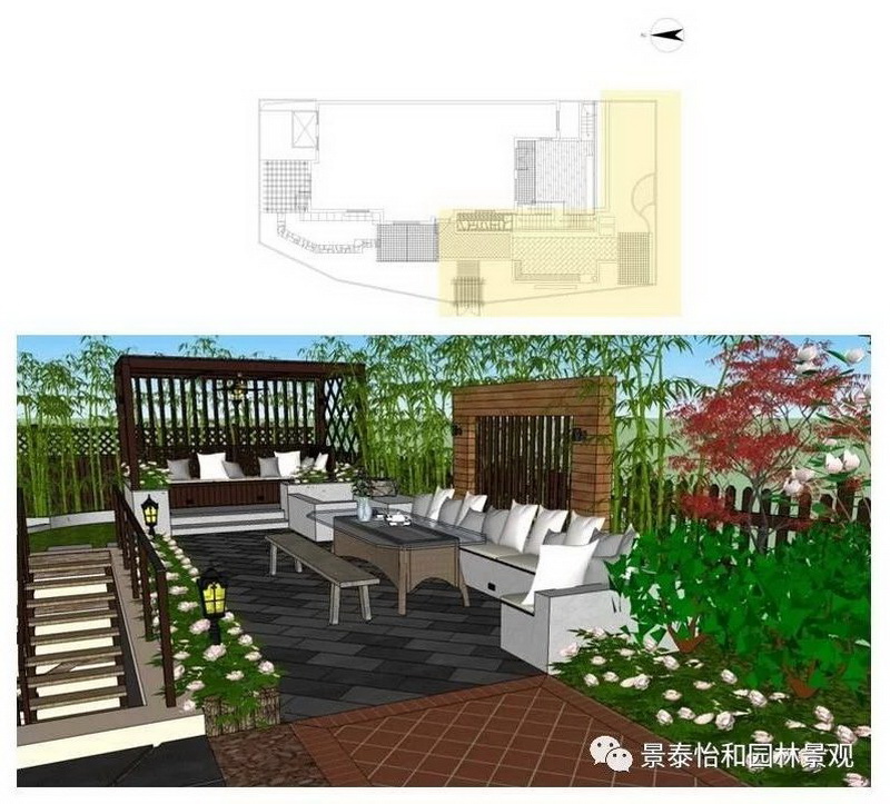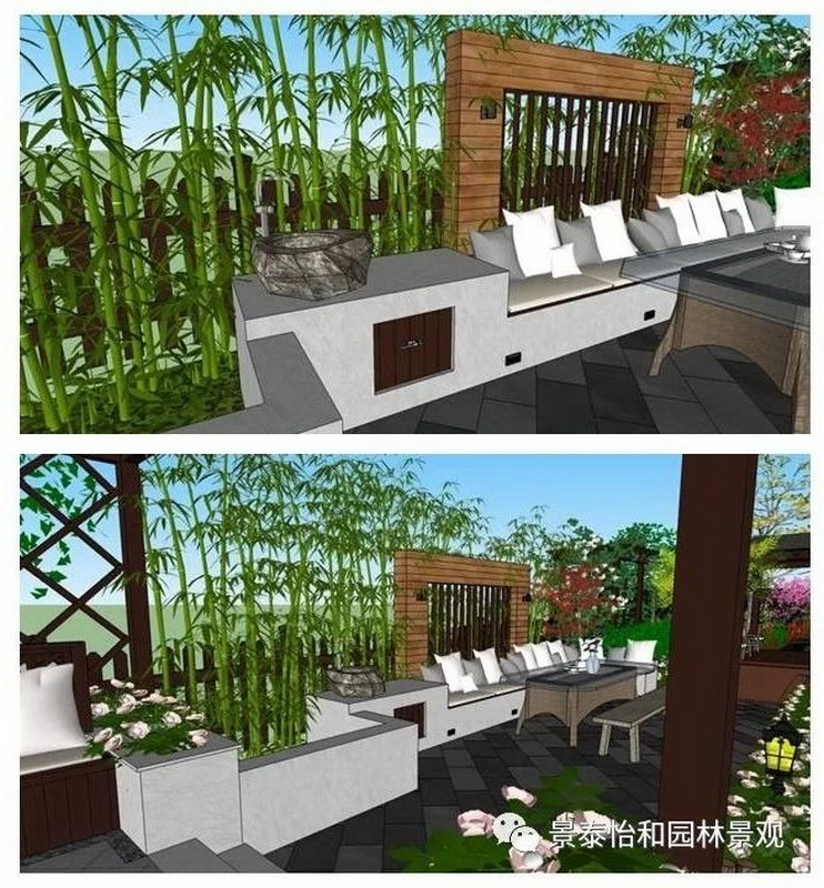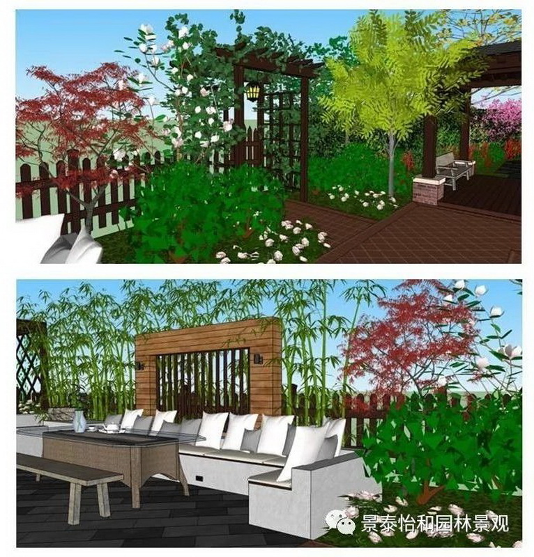 庭院應與周邊環境協調一致,能利用的部分盡量借景,不協調的部分想方設法視覺遮蔽。