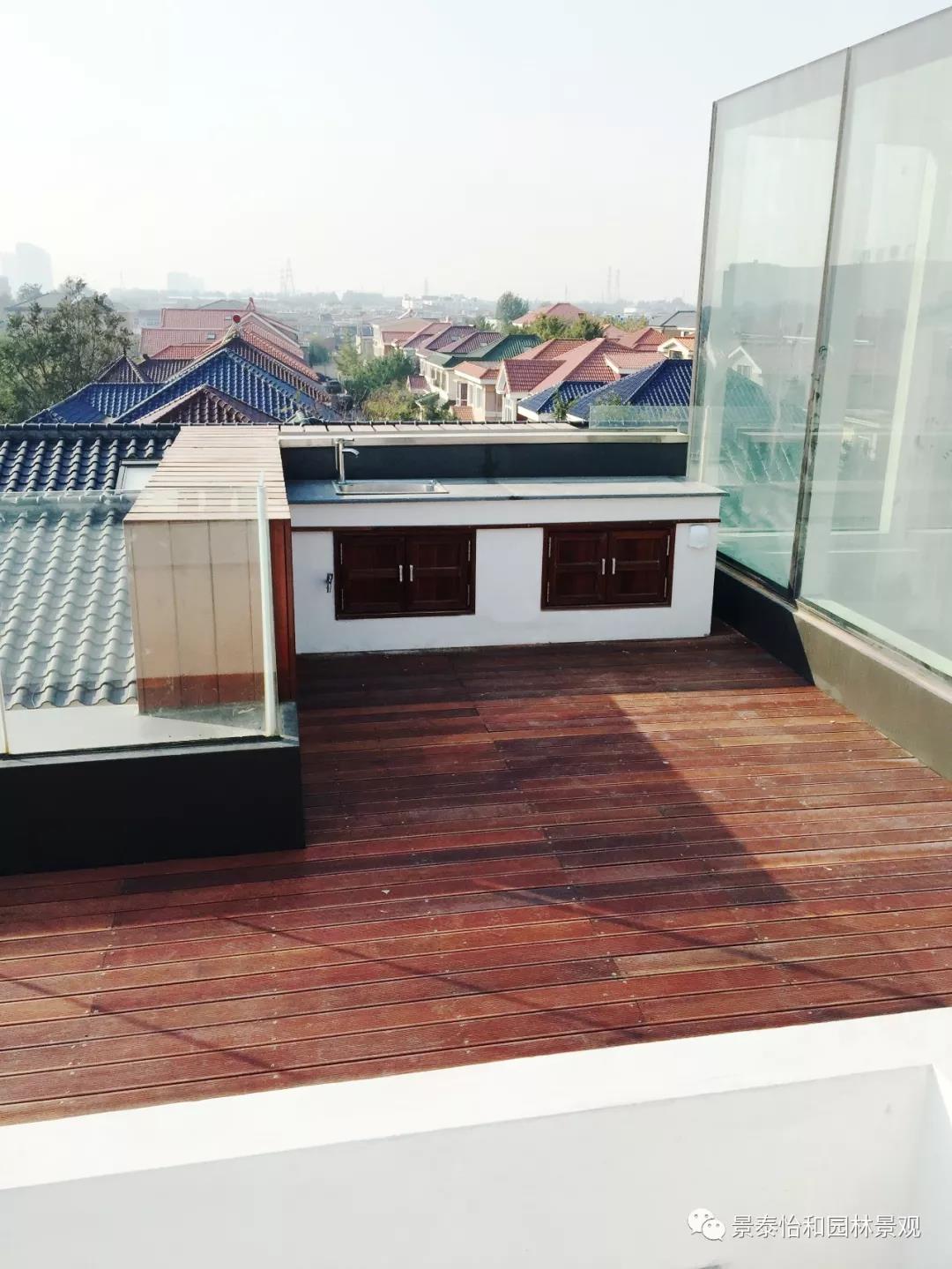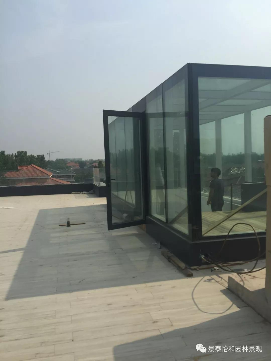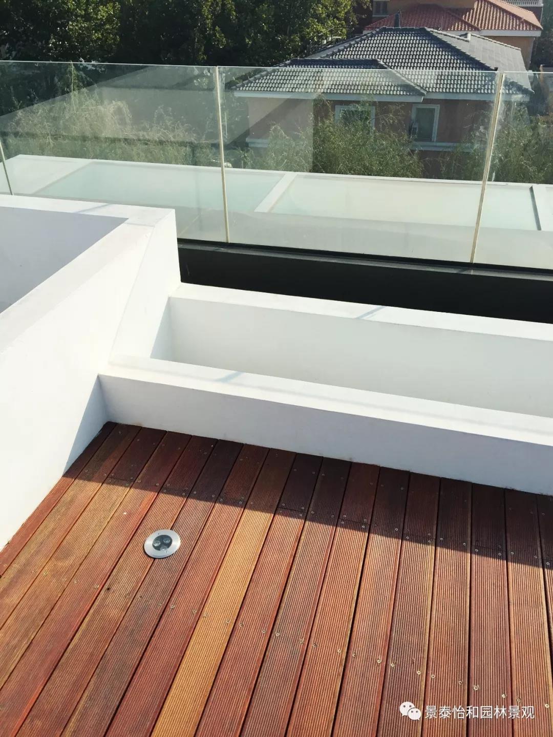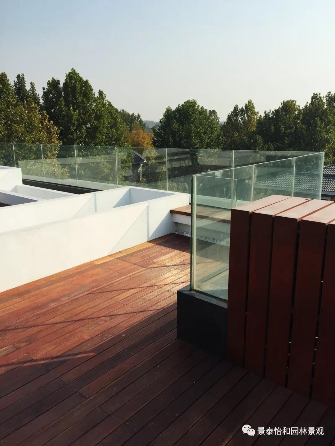 屋頂四周全采用玻璃防護欄,當夜晚溫馨的燈光映照在夢幻般的玻璃上,反射出炫麗的光影,別墅屋頂玻璃欄桿可以呈現出不同的美感,讓別墅屋頂花園的整體效果更加與眾不同。