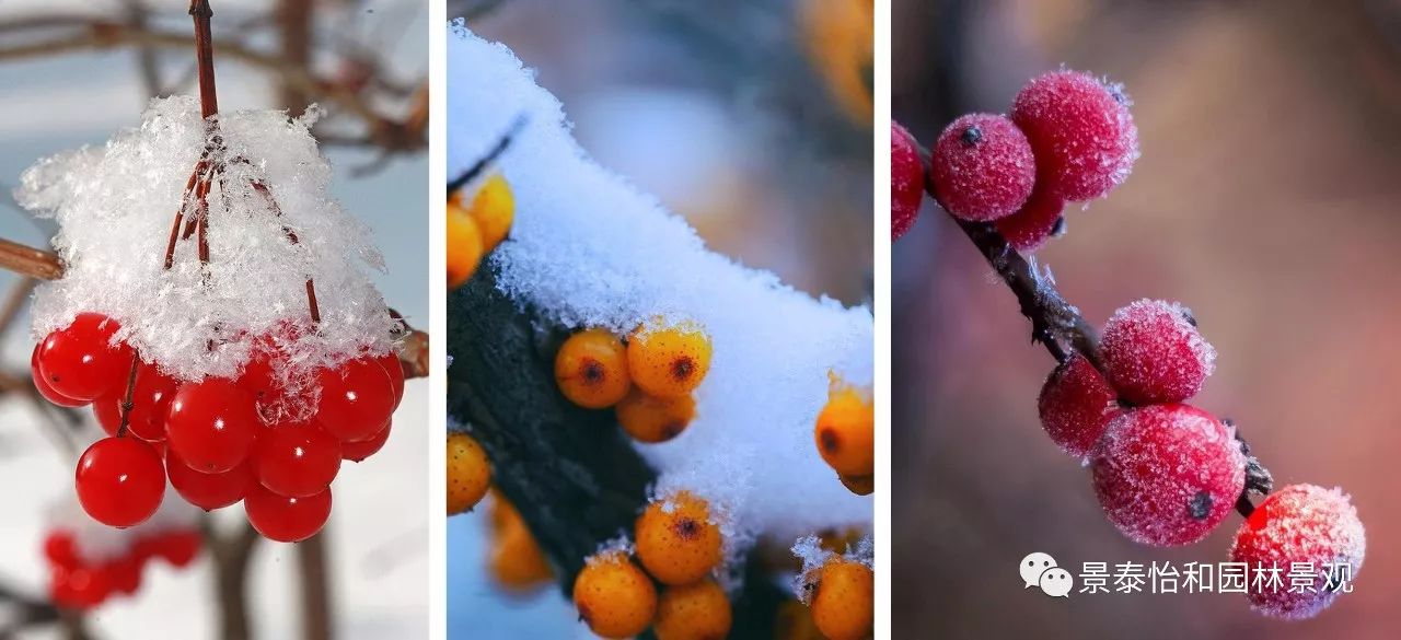 其實,冬季觀果的樹木品種并不少,一些秋后結實的植物,掛果可延續到冬季。適合庭院栽植的如火棘,果實累累,有紅、橙、黃等多種顏色;紫金牛,冬葉碧綠,果實鮮紅,經久不落,被稱作“富貴籽”;南天竹,不僅有瀟灑的紅葉,還有漂亮的紅果,充滿詩意和畫境。