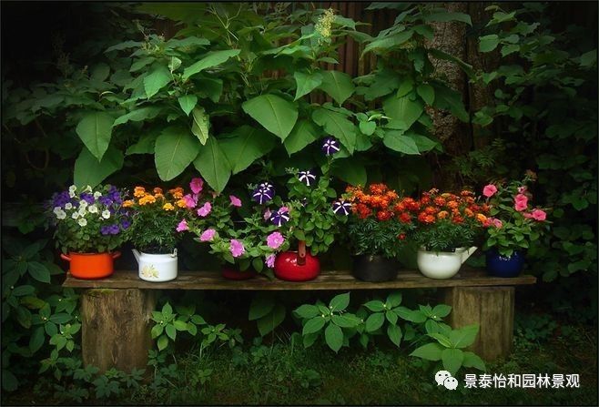 在庭院放盆栽也是為庭院增色的一種方式。花盆的顏色不妨挑選比較濃重的色彩,用來襯托整體風格,也可以隨喜好來調節色彩。