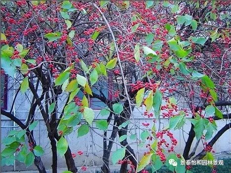 觀賞用途:枝條繁茂、葉色深綠、果實(shí)鮮紅,觀賞效果頗佳。花果并美,具有較高的觀賞價(jià)值。春天可賞花聞香,秋天可觀紅果累累。春末夏初層層開花,金銀相映,遠(yuǎn)望整個(gè)植株如同一個(gè)美麗的大花球,花朵清雅芳香。在園林中,常將金銀木叢植點(diǎn)綴于建筑周圍,觀花賞果兩相宜。
