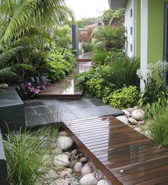 如果你擁有一棟別墅,那么,很幸運,你同時也擁有了無數人夢寐以求的花園。園子的悠閑愜意讓緊繃的神經得以放松,讓忙碌的生活得以舒緩。一方院子,有著花草相伴,看云卷云舒,花開花落。![]() 無論是獨棟別墅的花園還是郊區小院、屋頂的露臺,私密性是私家花園的重點。如果院子空間有限,而又和鄰居靠在一起,可以利用護欄、高大的樹木、灌木,或制作灌木籬笆,建設木圍欄或者直接砌一堵墻等方式來遮擋。 ![]() 如果想在保持私密性的同時又能與外界交流,可以采用相對開放的護欄,例如階梯形狀、空隙較大的護欄、鐵藝的護欄等。種植一些低矮灌木,如密植玫瑰、繡線菊、女貞等與攀爬植物(如五葉地錦、爬藤薔薇以及藤本月季)與護欄組合,達到上密下疏的效果。 ![]() ![]() ![]() 二、水景因地制宜 水景是打造花園的點睛之筆,院子水景的建造一定要因地制宜。如果有條件的話,不妨挖一個水池,蓄一池清水,點綴少許石景,配上一些植物,花草與水景相映成趣,更具美感。 ![]() ![]() ![]() 水景墻是花園里最讓人放松的景觀裝置,噴泉水墻是比較傳統的設計方式,但能帶給花園一種極簡和清新的面貌。動態的噴水效果能打破整面墻的厚重感,將一靜一動的景觀元素結合在一起,使整個花園更具活力。 ![]() ![]() ![]() 三、天然材料鋪貼 花園道路鋪裝,選材應以天然的石材、原木為主, 例如黃金麻,芝麻灰和芝麻白, 五蓮紅,青石板、砂礫、鵝卵石等原始樸實的材料, 用天然材料表現出粗線條的質樸,更凸顯花園的味道。 ![]() ![]() ![]() ![]() 在強調質感和異域感覺的庭院中,使用粗獷的紅磚或者棕色系石板效果很好, 既與暖色系的矮墻相匹配,也和種植區的草地或砂礫地面形成呼應。 ![]() 四、利用構筑物 構筑物為花園提供了更多觀賞的角度,像矮墻、平臺、廊架、涼亭等構筑物,因為不會遮擋視線,既能劃分空間,限定入口,又不會令花園顯得局促狹小,整體格局更加協調。 ![]() ![]() ![]() ![]() 一個原木搭建的亭式構筑物、平臺可以用來觀景或休息之用,不同高度、形式的圍墻則可以作為座椅的擋墻,建造時建議選用與住宅相近的材質,保持一致性。 ![]() ![]() ![]() ![]() ![]() |